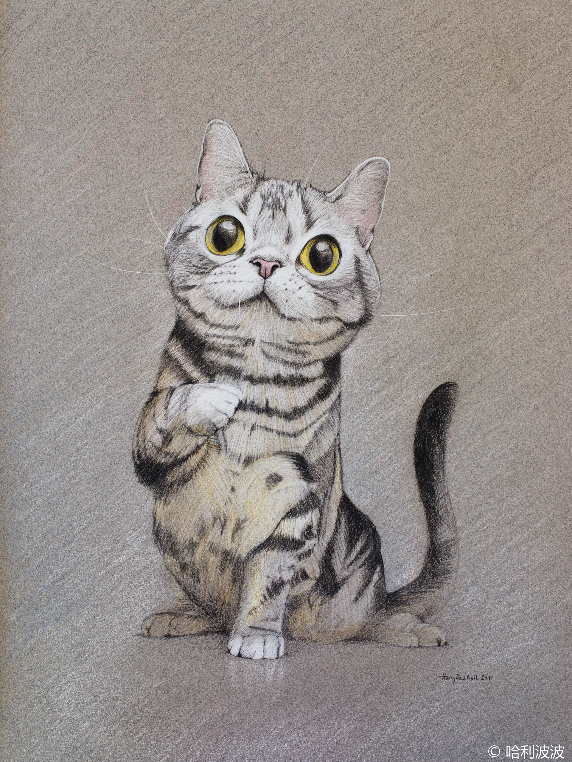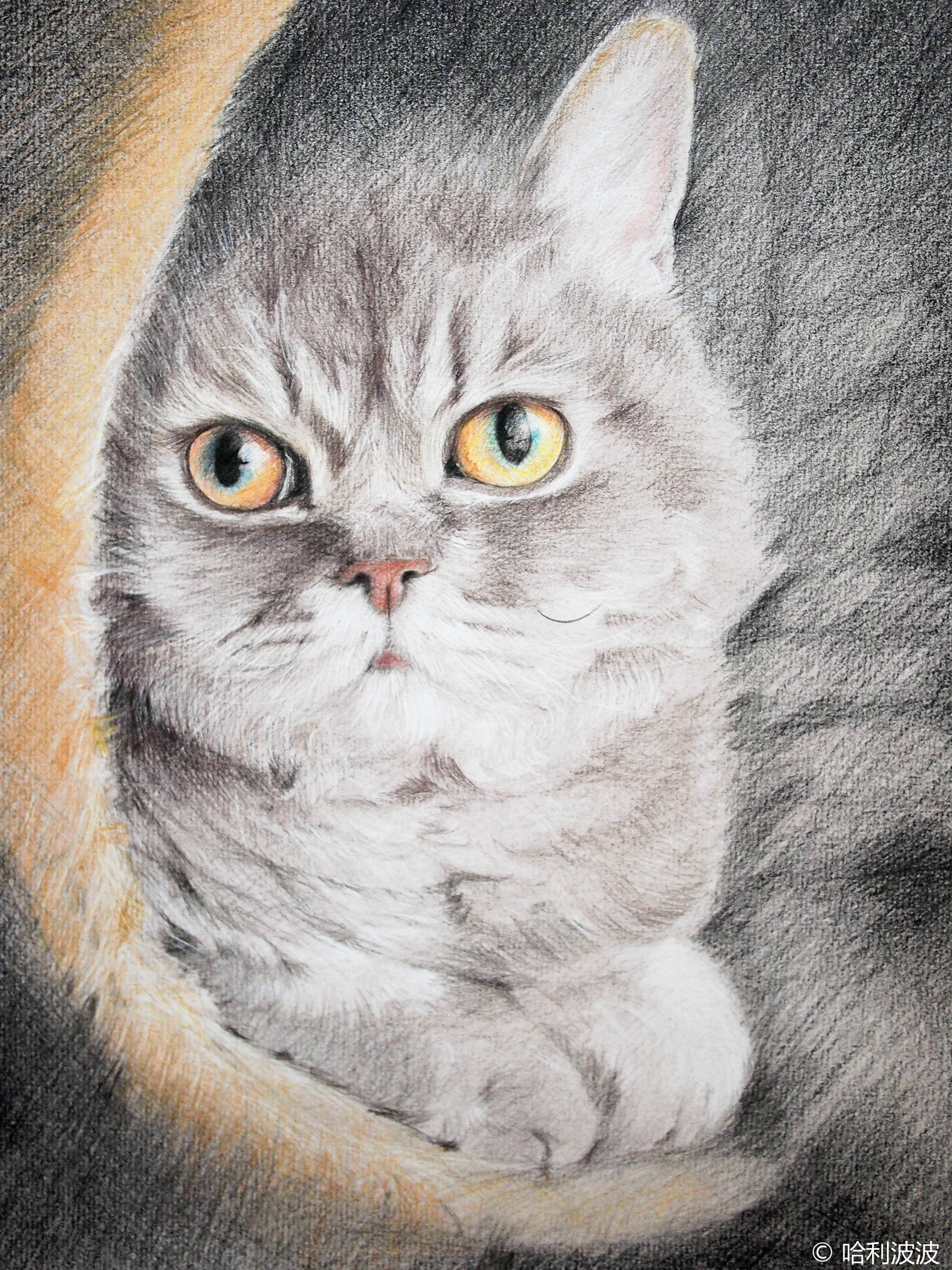 some cat drawings by color pencil